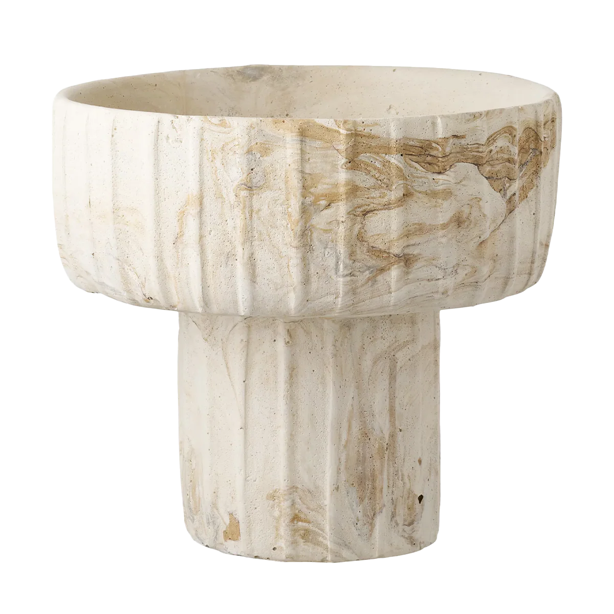 Met zijn organische marmerstructuur in bruin- en beigetinten en zijn stevige vormgeving, is deze vaas van cement een echte blikvanger op tafel, in een kast of op een dressoir. Dankzij de robuuste uitstraling en het natuurlijke kleurenpalet past de Hiba vaas moeiteloos binnen uiteenlopende woonstijlen, van modern tot Scandinavisch of Japandi. Combineer hem met een paar losse takken, gedroogde bloemen of laat hem puur decoratief stralen.