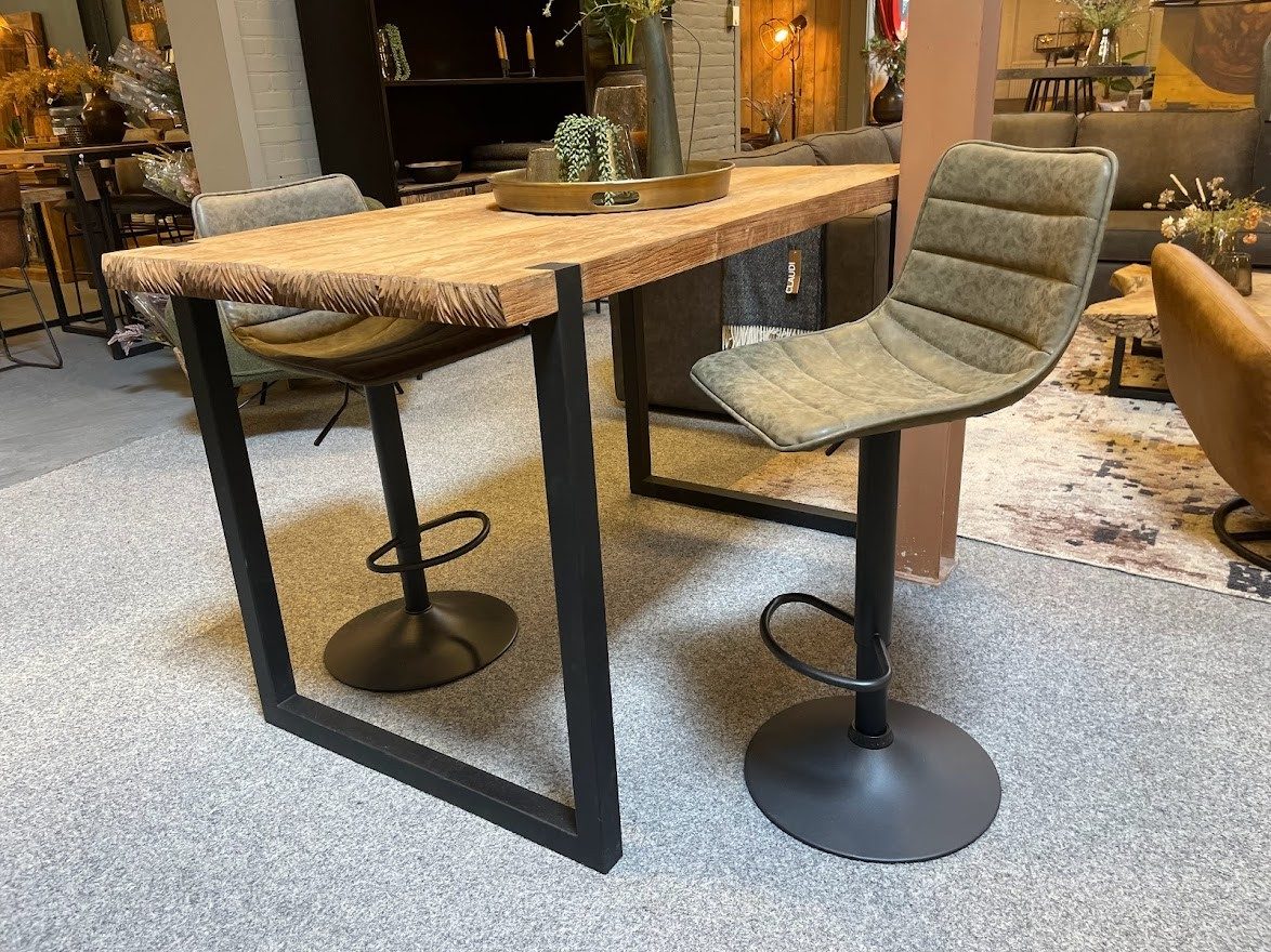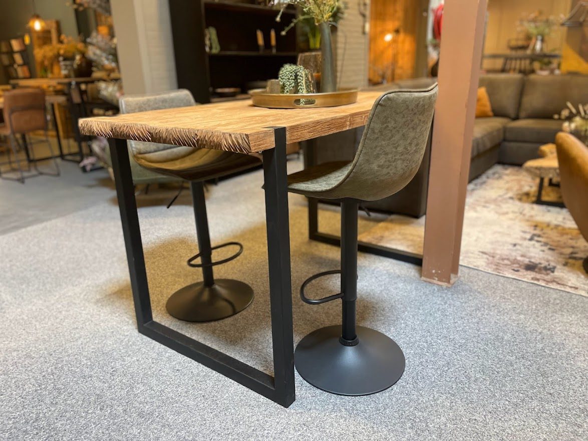 Barkruk Joy Olijf is een stoere barkruk met een erg fijn zitcomfort. De voorgevormde kuip, met rugleuning, zorgt voor een ondersteunende zit. Op de poot van zwart metaal, zit een kleine voetensteun, waardoor de voeten ook fijn geplaatst kunnen worden. Barkruk Joy Olijf is in hoogte verstelbaar door de hendel onder de zitting. Het kuipje is bekleed met een stoere en erg sterke microvezel stof met leerlook. Een stoere maar toch subtiele barkruk voor gezellige avonden met vrienden.