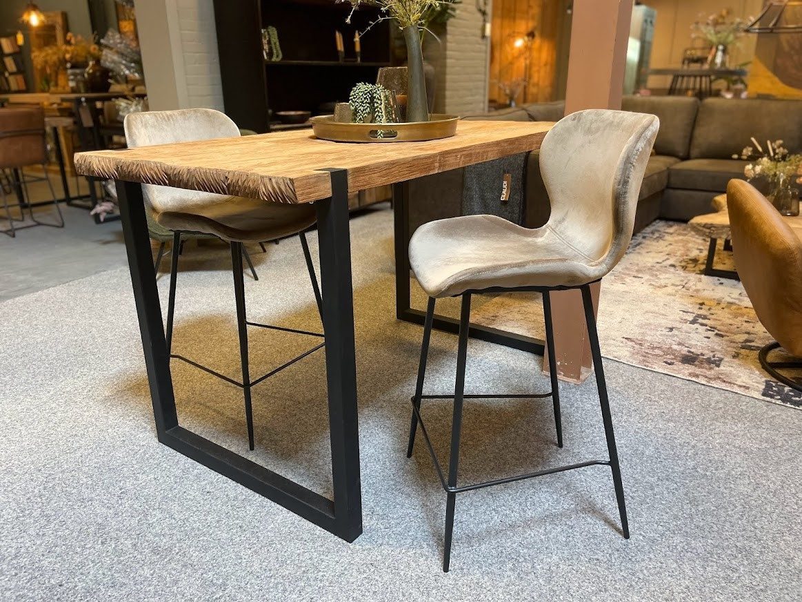 Barstoel Dory champagne is een elegante barstoel met een fijn zitcomfort. De voorgevormde kuip, met rugleuning, zorgt voor een ondersteunende zit. Op de poot van donker antraciet, zijn fijne steunen geplaatst, waardoor de voeten ook fijn geplaatst kunnen worden. Barstoel Dory Champagne heeft een kuipje die bekleed is met een mooie zachte velours stof, waardoor deze een elegante uitstraling heeft. Barstoel Dory is een elegante barstoel met een stoere touch door het donkere antraciet metalen onderstel.