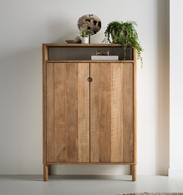 Bergkast Apollo kenmerkt zich door de strakke lijnen en de moderne houten pootjes. De iets terug liggende deuren zorgen voor een mooi ruimtelijk effect, terwijl de afgeronde hoeken naadloos overgaan in de poten voor een verfijnde afwerking.