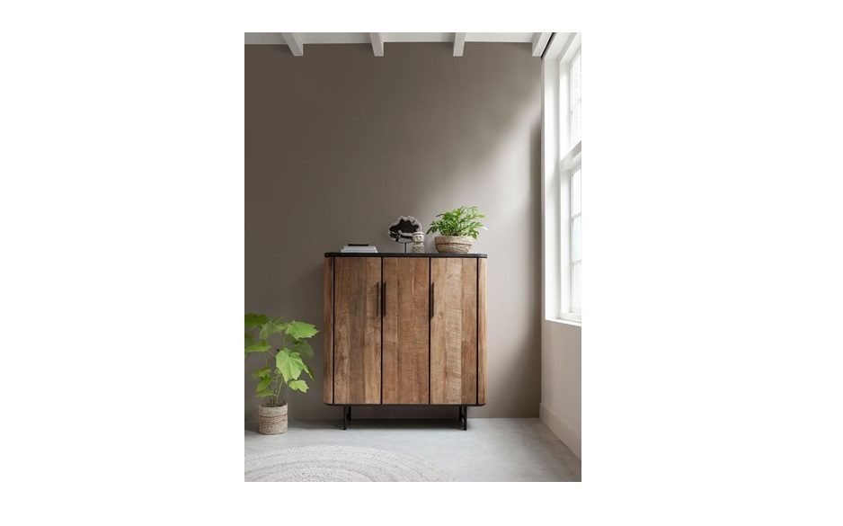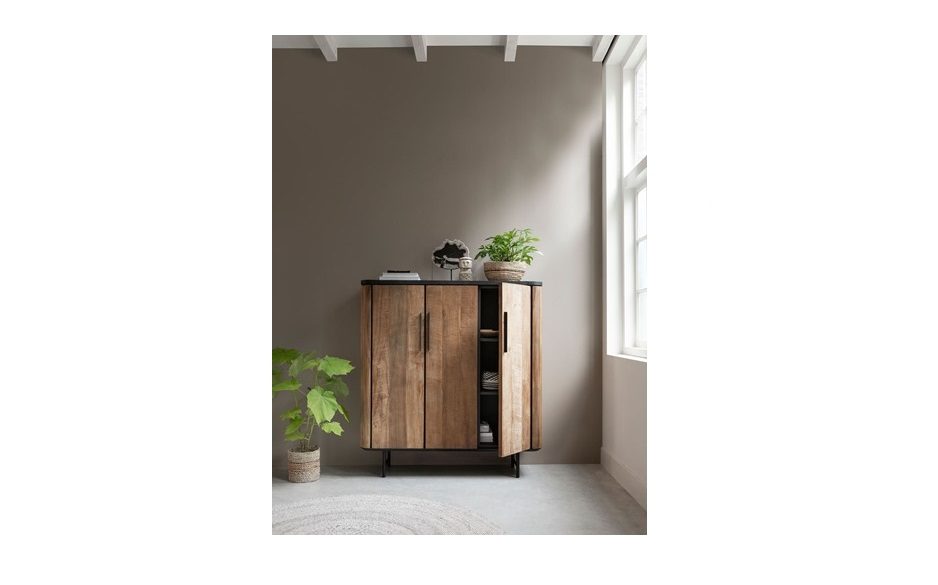 Bergkast Soho van DTP-Home is gemaakt van gerecycled teakhout en mortex, met zijn 3 deuren en speelse design is deze bergkast perfect voor elk interieur.