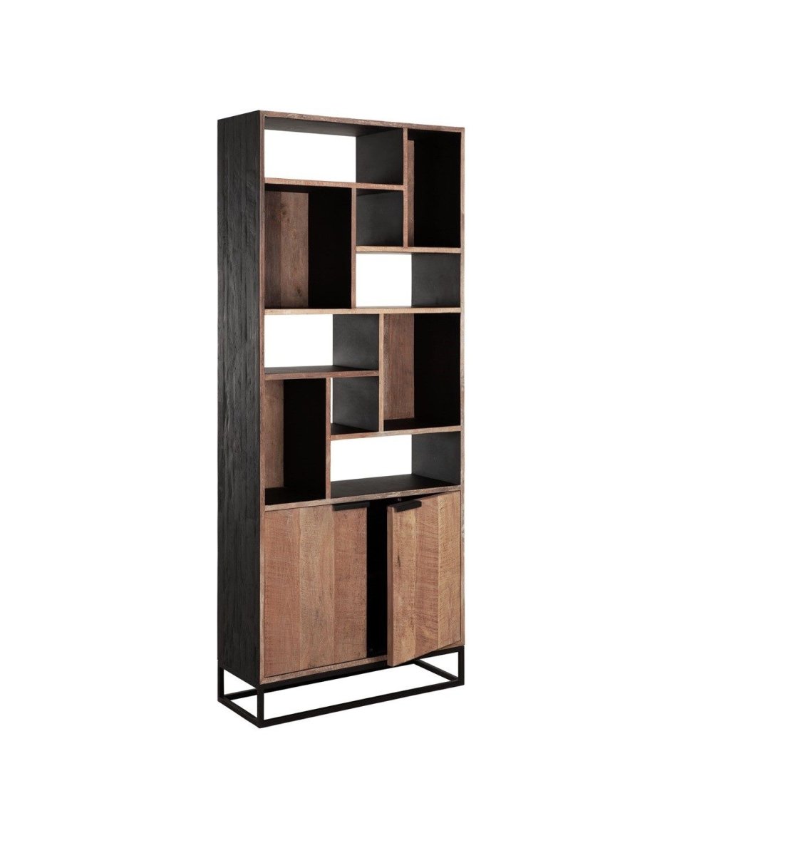 Boekenrek Cosmo is een prachtige kast uit de serie Cosmo. Gemaakt van oud, gerecycled teakhout waarbij de twee buitenzijden zwart zijn afgewerkt. Dit geeft een prachtige dieptewerking en maakt de kast helemaal af. Boekenrek Cosmo is voorzien van 10 open vakken en 2 deuren. De gehele kast staat op een metalen onderstel wat de kast een luchtige uitstraling geeft.