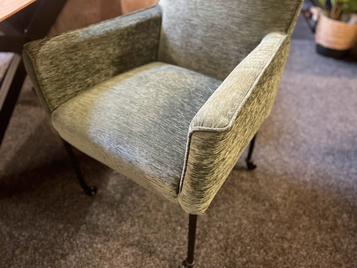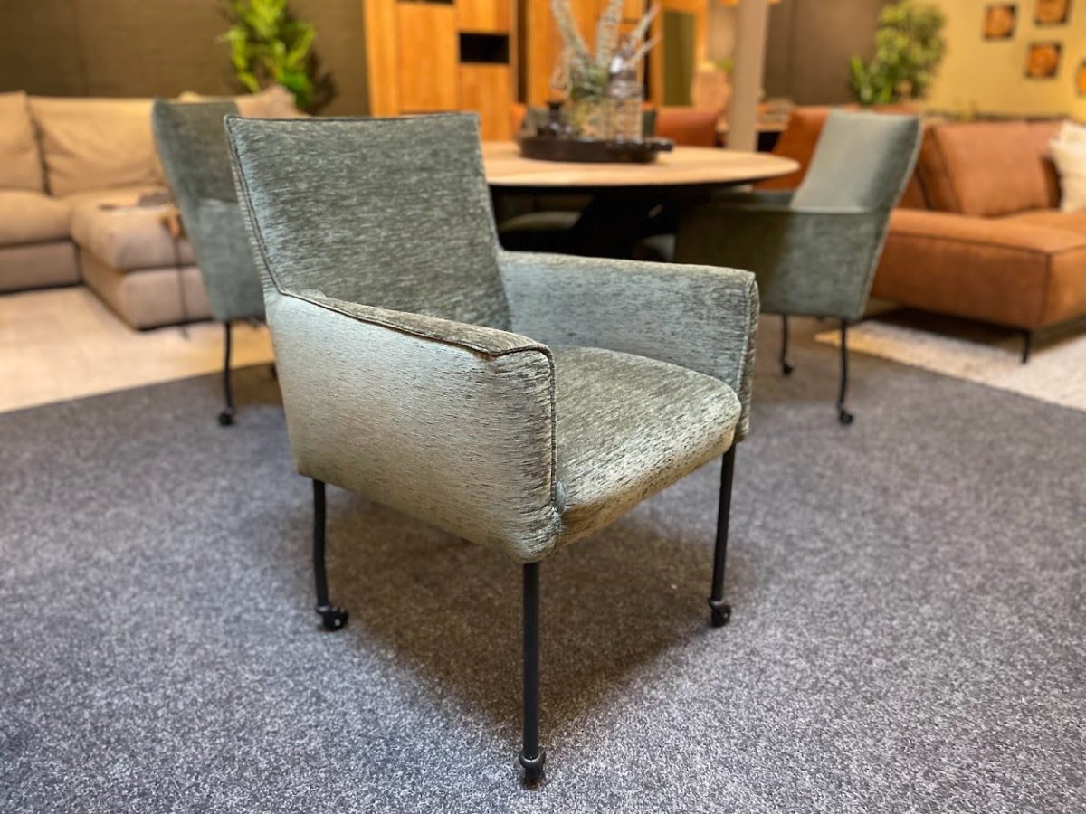 Eetkamerfauteuil Kelvin is in stof Loft Eucalyptus zoals afgebeeld: 449,-