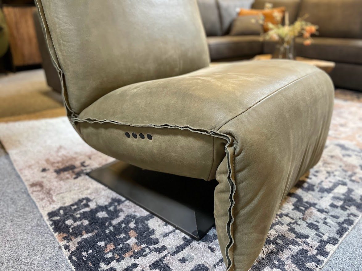 Chill-Line Relaxfauteuil Indi Olive (Kenia Leder) zoals afgebeeld: met accu en bijpassend lendekussen en metalen plaat poot: 2528,-