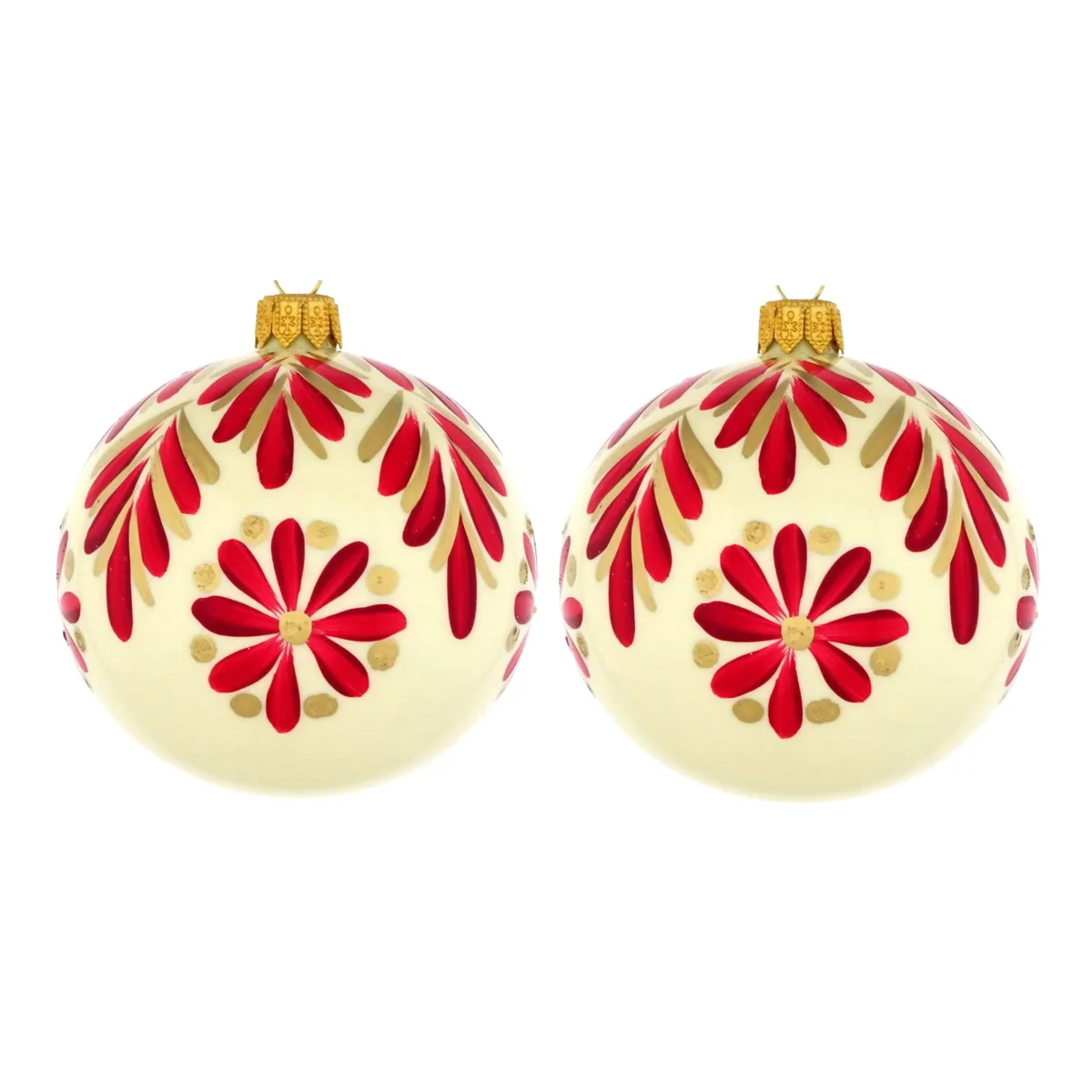 Dagmara kerstbal – glas – set van 2 – met rode florale motieven