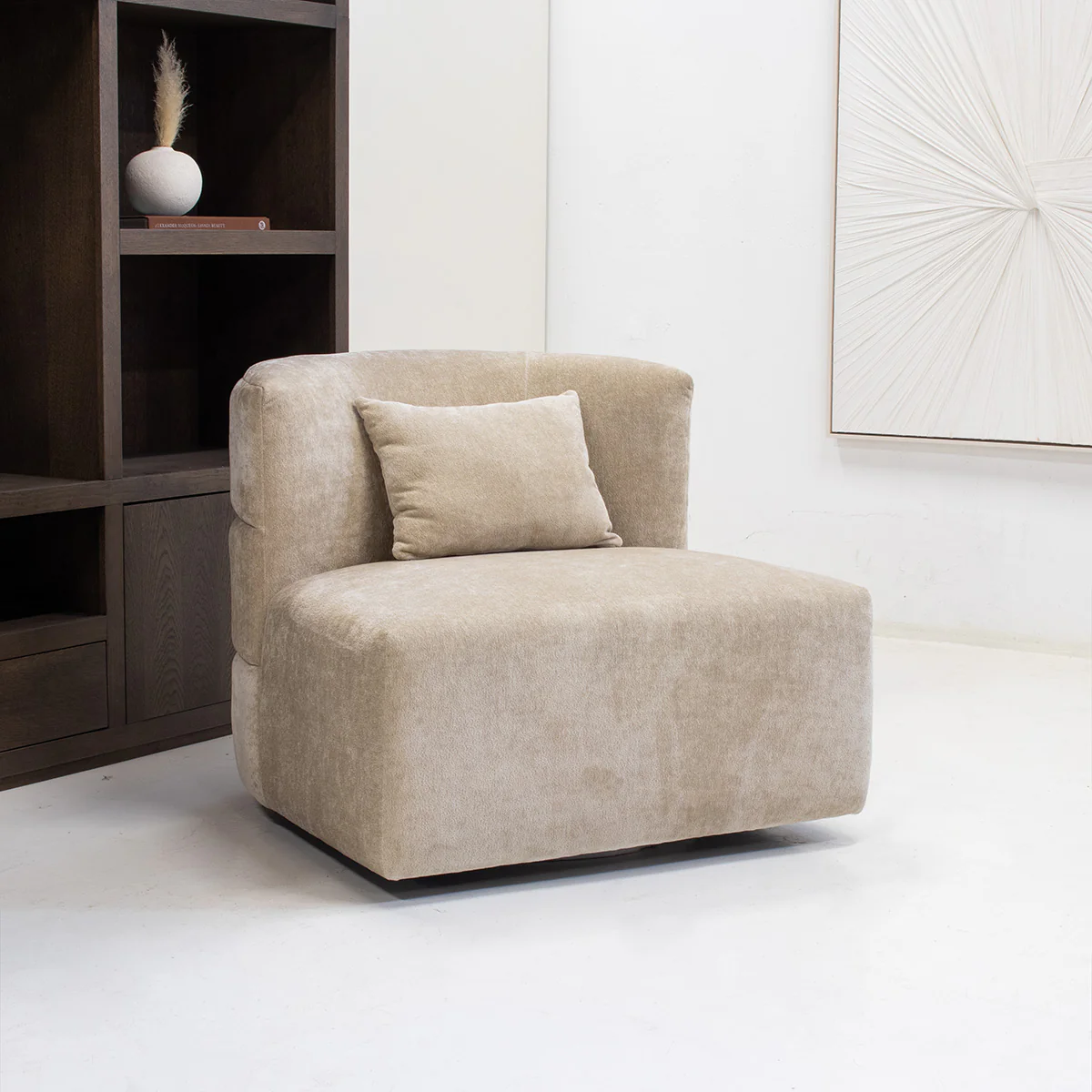 De DÉJA Draaifauteuil Ethan in Beige is een prachtige toevoeging aan je interieur. Met zijn Mid Century stijl straalt deze fauteuil een tijdloze elegantie uit. De combinatie van hout, stof en metaal zorgt voor een stevige constructie en een comfortabele zitervaring. De beige kleur geeft een warme en uitnodigende uitstraling, perfect voor elke woonkamer. De fauteuil is ontworpen voor ultiem comfort en is ideaal voor ontspanning na een lange dag. Dankzij de hoogwaardige materialen en het doordachte ontwerp is deze draaifauteuil zowel stijlvol als functioneel.