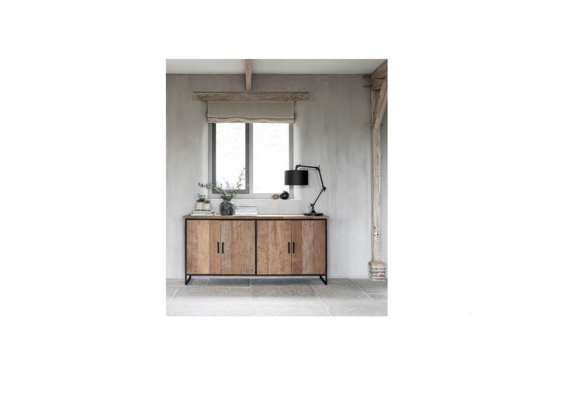 Dressoir Beam No.1 is gemaakt van teakhout en is afgewerkt met een metalen frame.