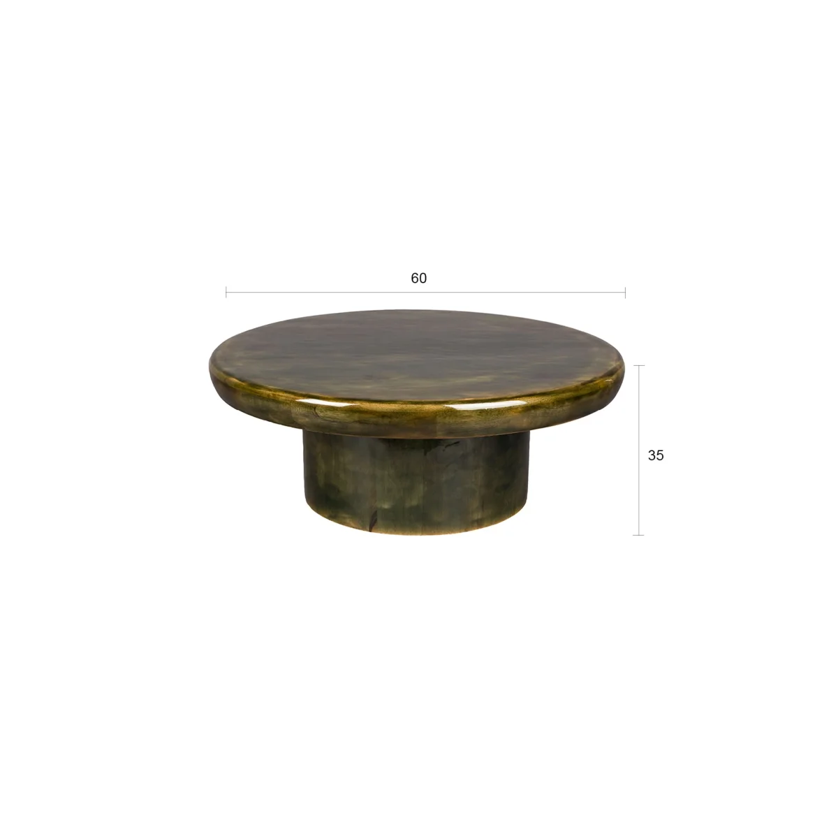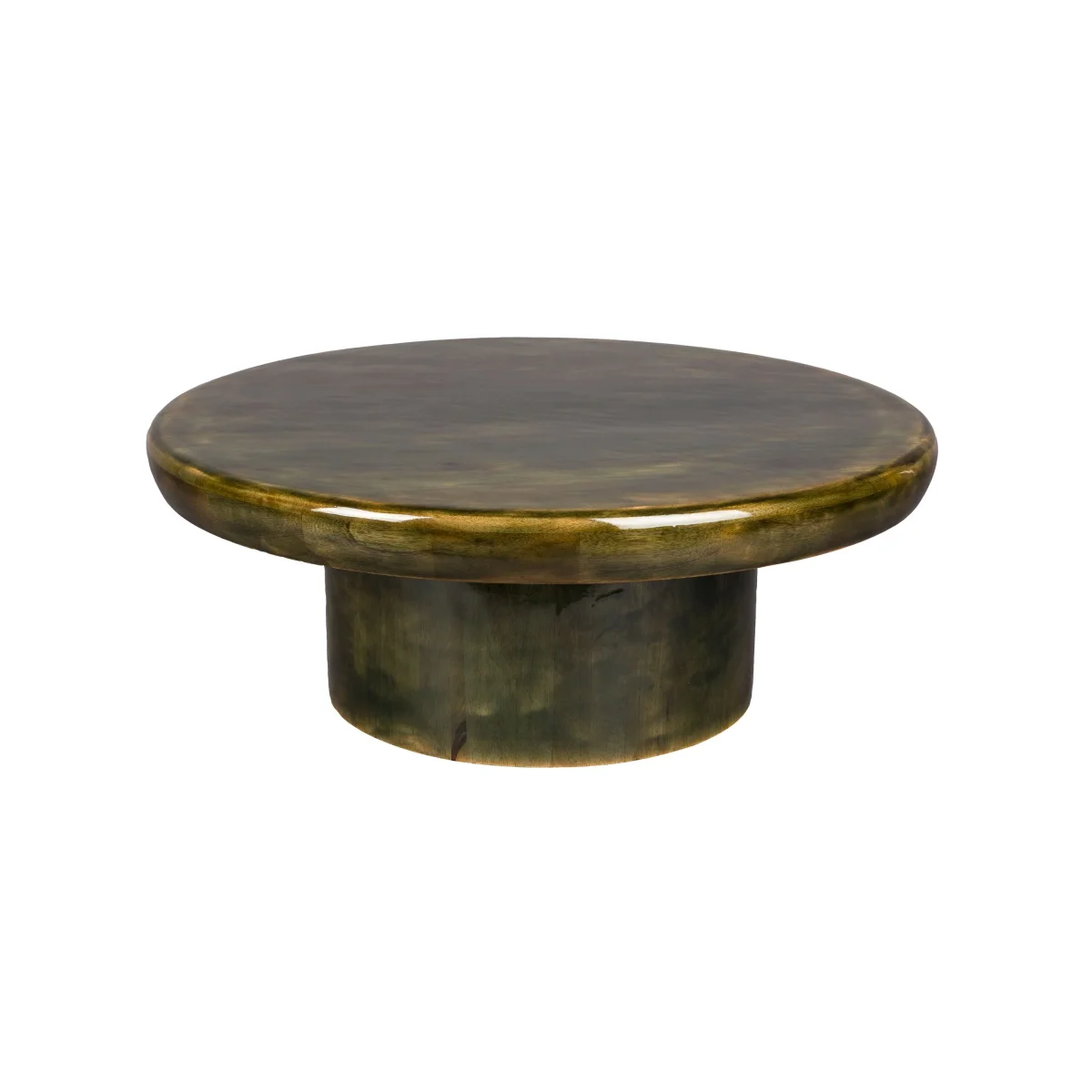 Breng vintage charme in huis met de Dutchbone Mush salontafel: een warme, retro paddenstoelvorm in diep groen mangohout met een glanzende afwerking. Tijdloos en uniek!