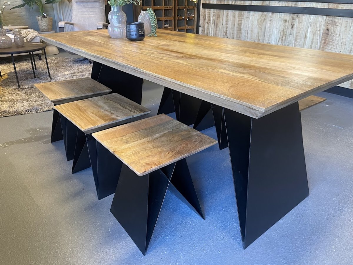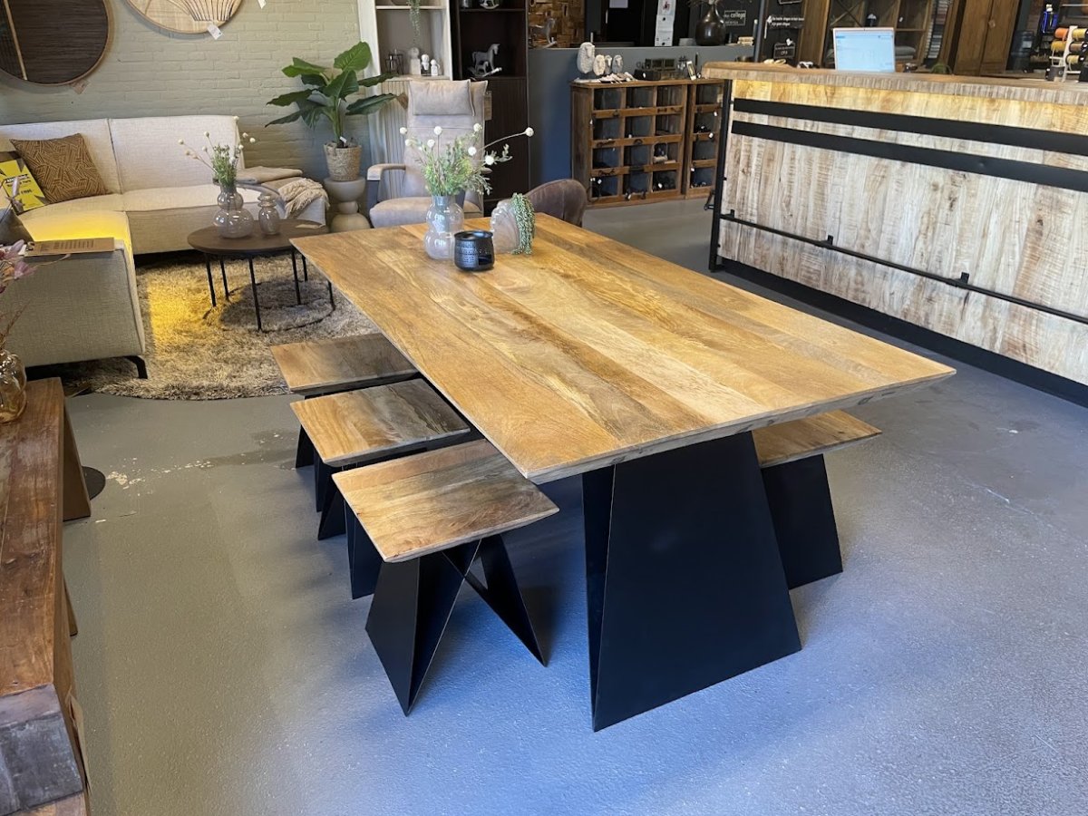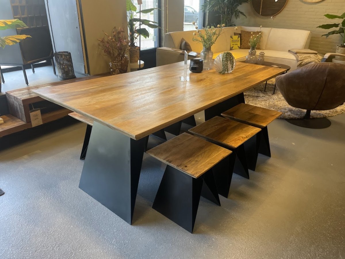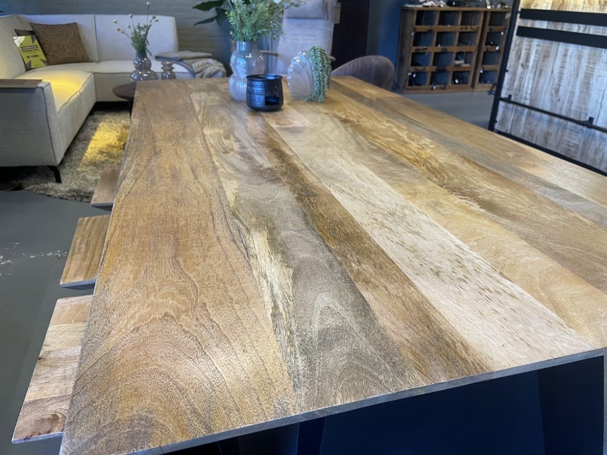 Met eetkamertafel Iron 200cm haal je een robuuste en stijlvolle tafel in huis die zorgt voor warmte, karakter en gezelligheid. Combineer hem met de Iron krukjes voor een complete set en of creëer met prachtige eetkamerstoelen een sfeervolle plek waar je elke dag met plezier aanschuift.