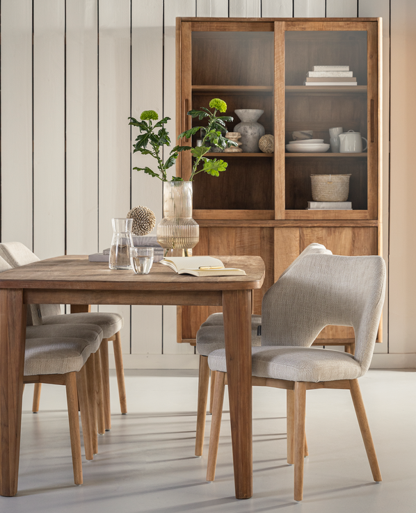 Rechthoekige Eetkamertafel Bliss is gemaakt van teakhout en is voorzien van een houten poot. Met ronde hoeken en zachte lijnen is eettafel Bliss helemaal van nu. De taps toelopende poten zorgen voor extra zitruimte en een ruimtelijk gevoel.