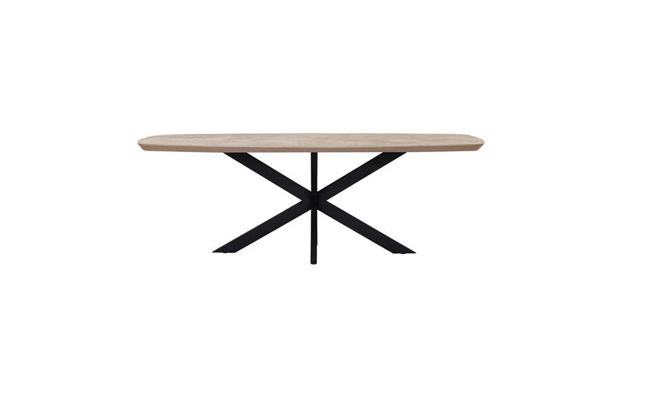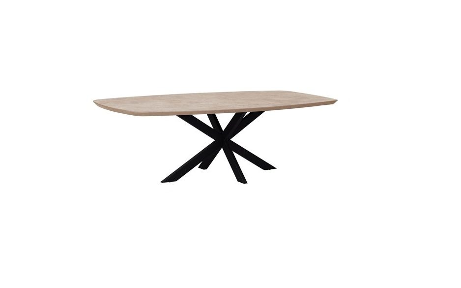 Eettafel Scala Vito is gemaakt van Mortex in de kleur sand, de tafel heeft een deens ovale vorm en een zwart stalen kruispoot wat de tafel een moderne uitstraling geeft.