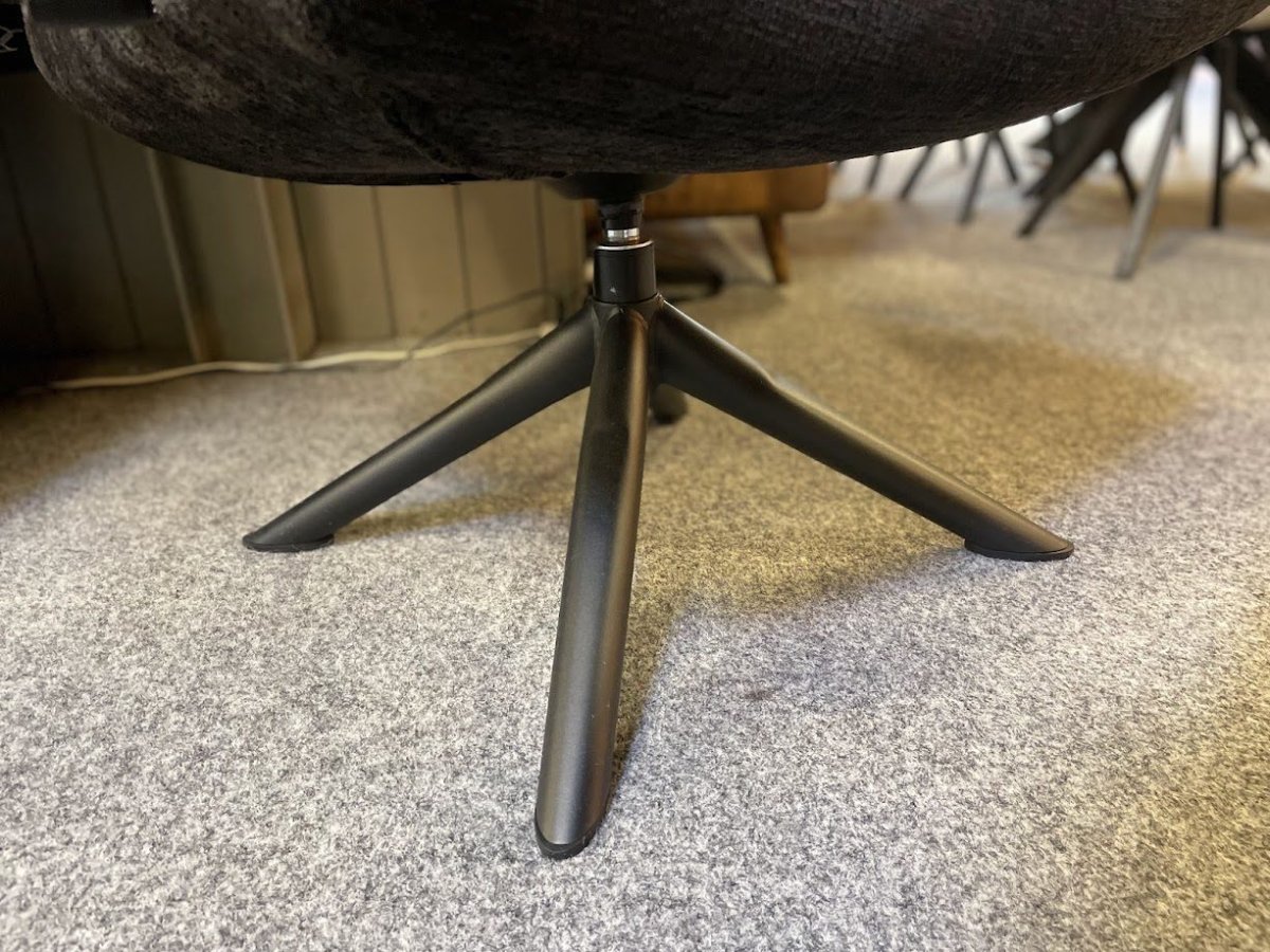 De donkere metalen spinpoot behoud het ruimtelijke effect. Door de goede ondersteuning van koudschuim en de diepe zit kan je relaxt zitten in deze fauteuil.