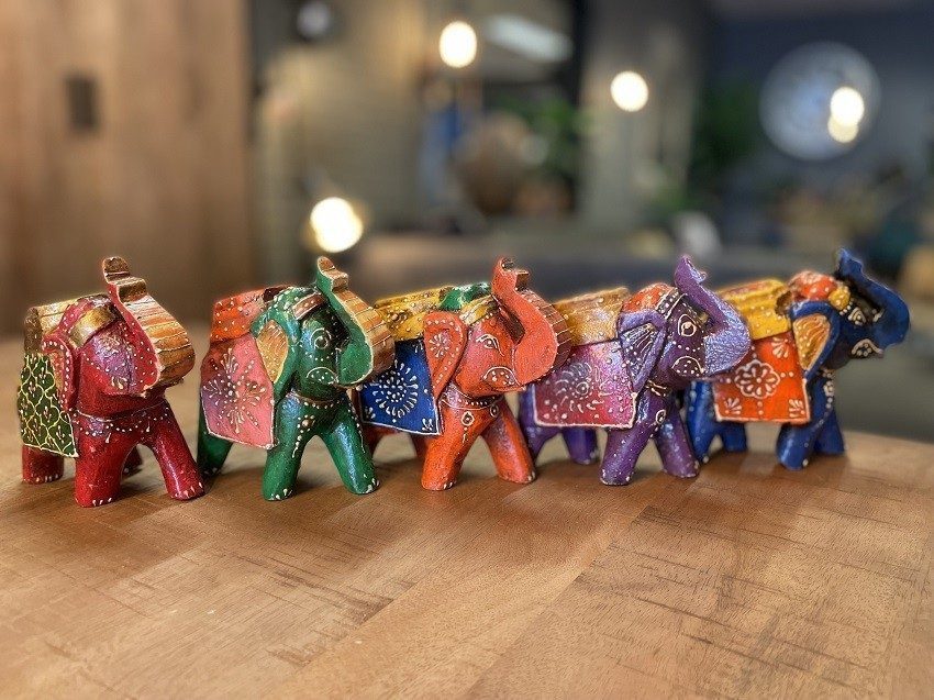 Deze prachtige Olifantjes zijn handgemaakt en hand geschilderd in India. Ze zijn in diverse kleuren verkrijgbaar.