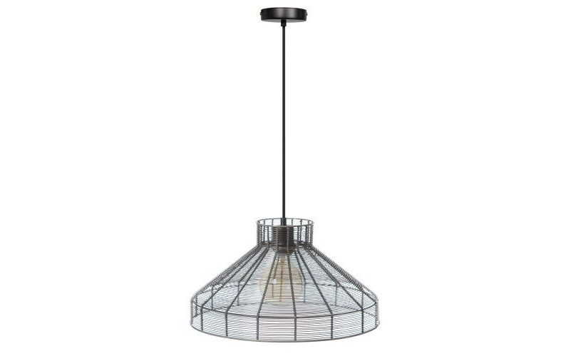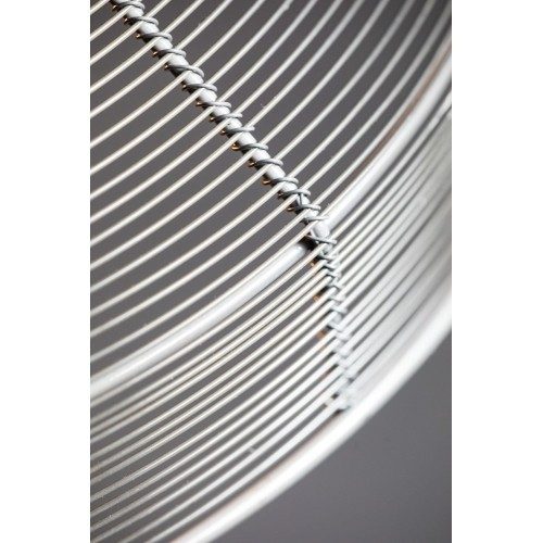 De stoere hanglamp Mirage is gemaakt van metaal. De open draadstructuur geeft de lamp een luchtig effect en toch stoere uitstraling en hierdoor is ook de lichtbron goed te zien. Het metaal is uitgevoerd in de kleur gunmetal en is afgewerkt met een zwarte draad dat met stof is afgewerkt. Ook verkrijgbaar in een maat groter, 60cm doorsnede.