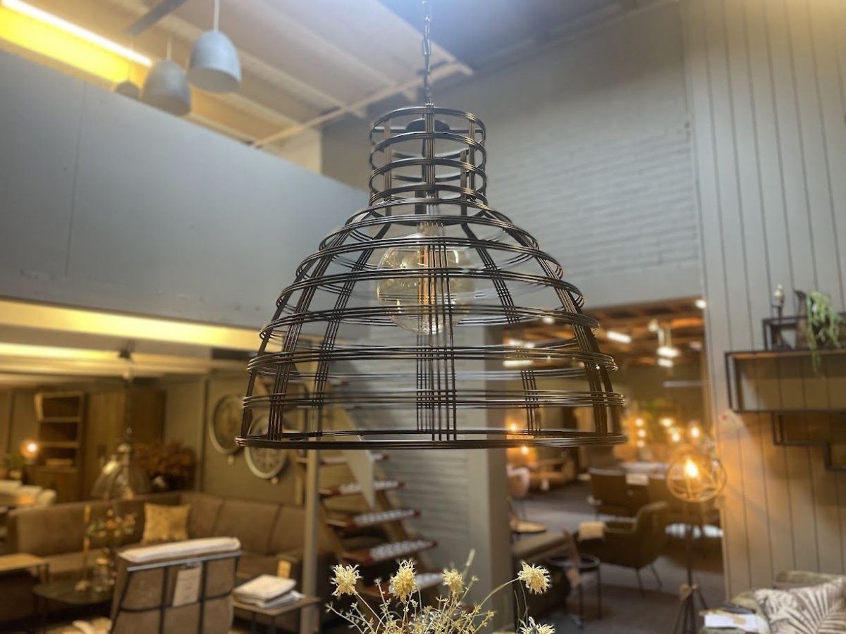 De Molfetta is een grote, stoere lamp met een doorsnee van maar liefst Ø 70 cm! De lamp is gemaakt van metalendraden en hangt aan een industriële ketting die aan het plafond kan worden bevestigd.