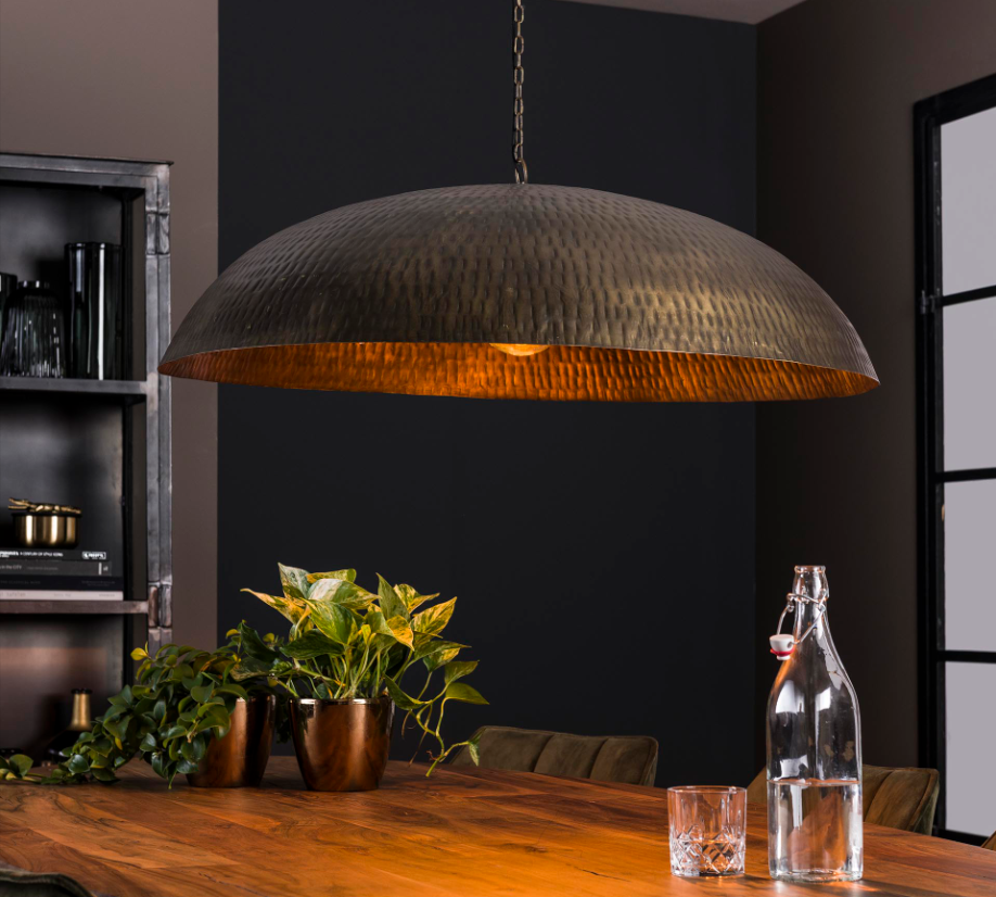 Hanglamp Tribez is een unieke lamp die van iedere ruimte een stoer geheel kan maken. Dit model is voorzien een grote ronde kap van maar liefst 90cm doorsnede. Gemaakt van metaal en hangend aan een metalen ketting waardoor deze gemakkelijk in hoogte te verstellen is.