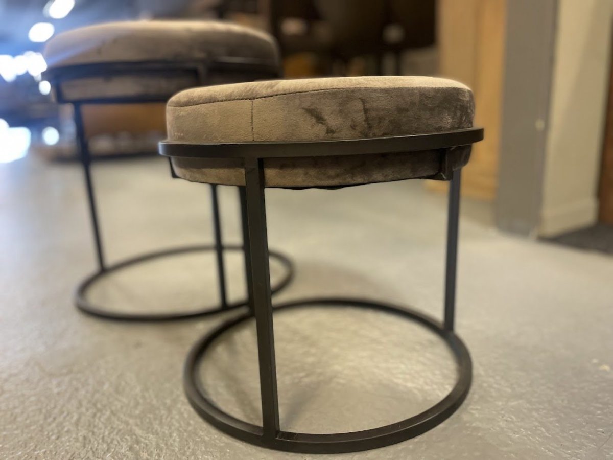 Op zoek naar iets unieks? Dan is dit kleine poefje velours antraciet echt iets voor jou! Een stoer, zwart metalen frame met een zachte zitting bekleed met een sterke velours stoffering. Je kunt hem gebruiken als bijzettafeltje, in combinatie met een salontafel.