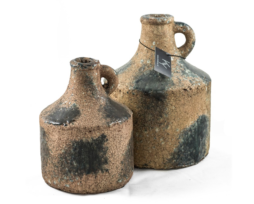 Een stoere kruik gemaakt van aardewerk met een rode craquelé laag. Deze is leverbaar in twee maten. Erg leuk als setje samen, maar ook erg mooi in combinatie met andere accessoires.