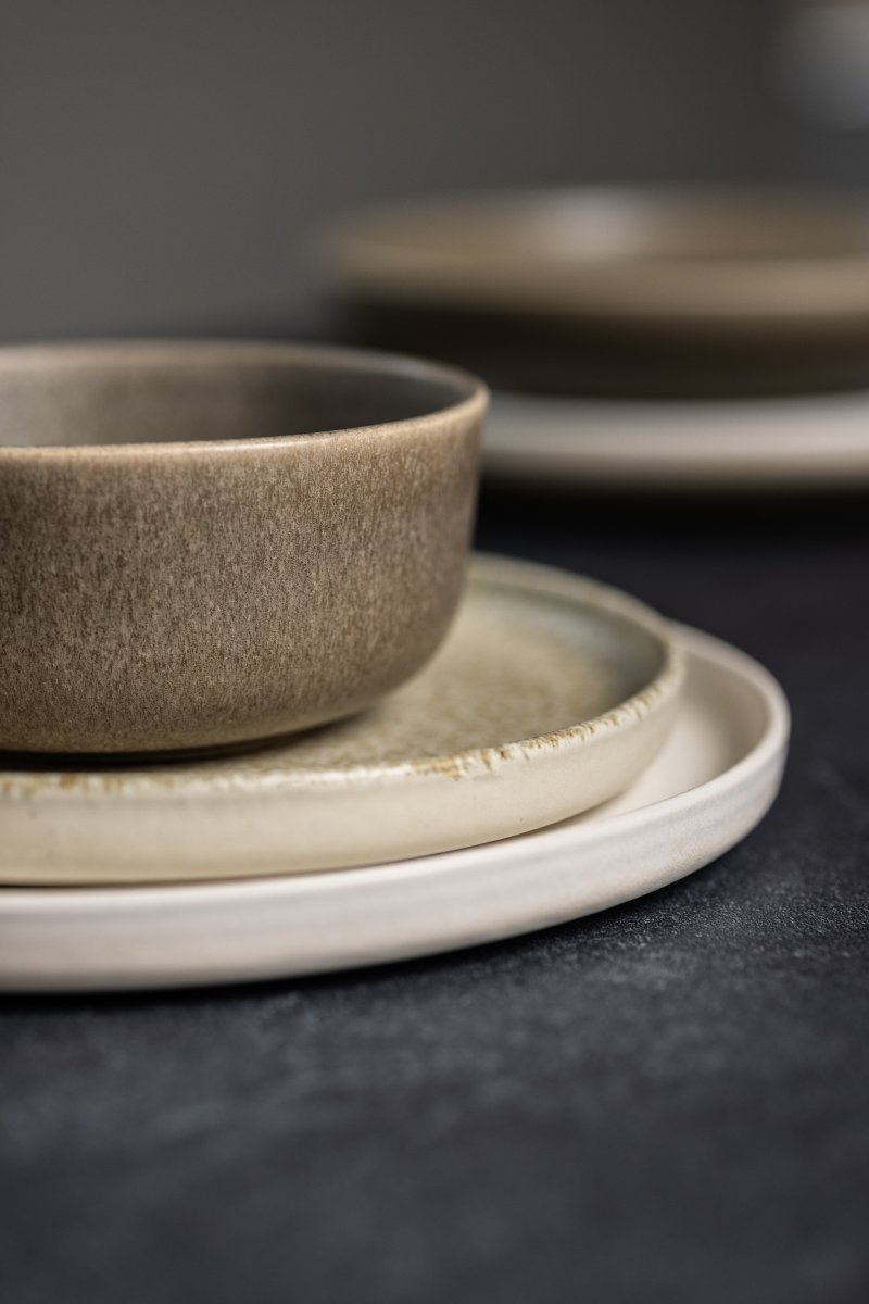 De serviesset Dreamy Ivory & On The Rocks brengt de rust van de Portugese natuur naar je tafel. De set heeft natuurlijke crèmekleuren, gecombineerd met het bruin van Portugese rotsen.