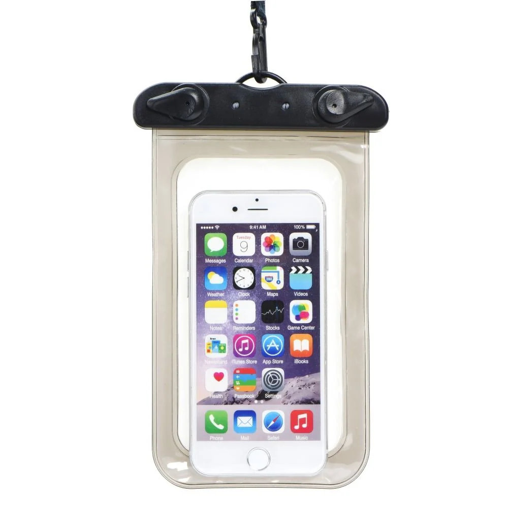 Deze waterdichte hoes doet precies wat de naam al doet vermoeden: hij zorgt ervoor dat uw telefoon droog blijft. Ook in het zwembad of in de zee. De zak wordt hermetisch afgesloten door de kunststof sluiting, waardoor er geen water in de hoes kan komen. Zo kunt u in het water tóch die mooie foto of dat leuke filmpje maken, zonder dat u zich bezig hoeft te houden met of uw telefoon wel droog blijft.