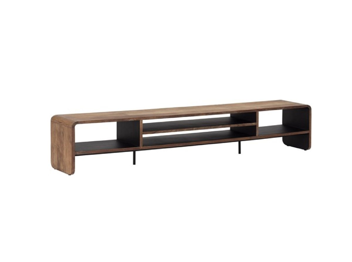 Open tv-meubel Evo XL is gemaakt van gerecycled teakhout, het tv-meubel heeft 2 grote en 2 kleine open vakken.