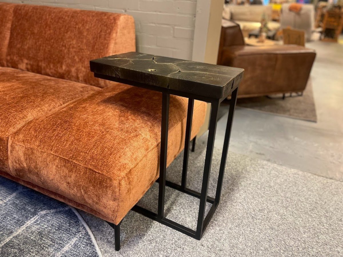 Op zoek naar een unieke en speciale blikvanger? Dan is overzettafel Golden de perfecte match! Gemaakt van massief teakhout met een zwarte en gouden finish. Overzettafel Golden is een ideaal tafeltje met een stoere, hotel chique uitstraling. Ook geschikt om over het zitvlak van een bank of stoel heen te zetten. Zo heb je je drankje en hapje altijd dichtbij!