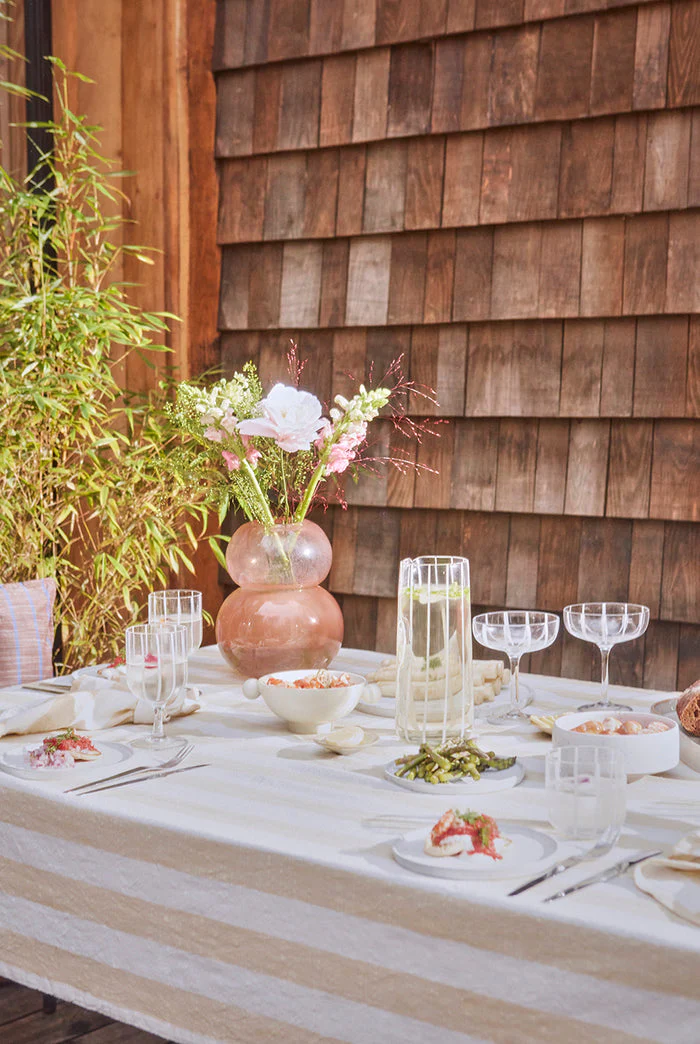 Dek de tafel met het gestreepte glas uit de Mizu serie. De Mizu serie kenmerkt zich door een elegante, sierlijke en moderne expressie die goed past in de moderne woning. Het glas is ideaal voor het serveren van allerlei heerlijke drankjes. Het Mizu glas is geschikt voor zowel alledaagse als feestelijke gelegenheden op een gedekte tafel. Elk glas is uniek omdat het mondgeblazen is, en met handgemaakte details. Wordt geleverd in een set van twee. Het glas heeft een inhoud van 320 ml. Vaatwasmachinebestendig. Style no. L300544 Kleur: Helder Kwaliteit: 100% Glas Afmetingen: Ø8 x H8,2 cm