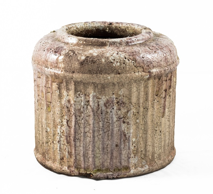 Een stoere bloempot; verkrijgbaar in drie maten. Deze is gemaakt van aardewerk met een oud roze, vintage glazuur.