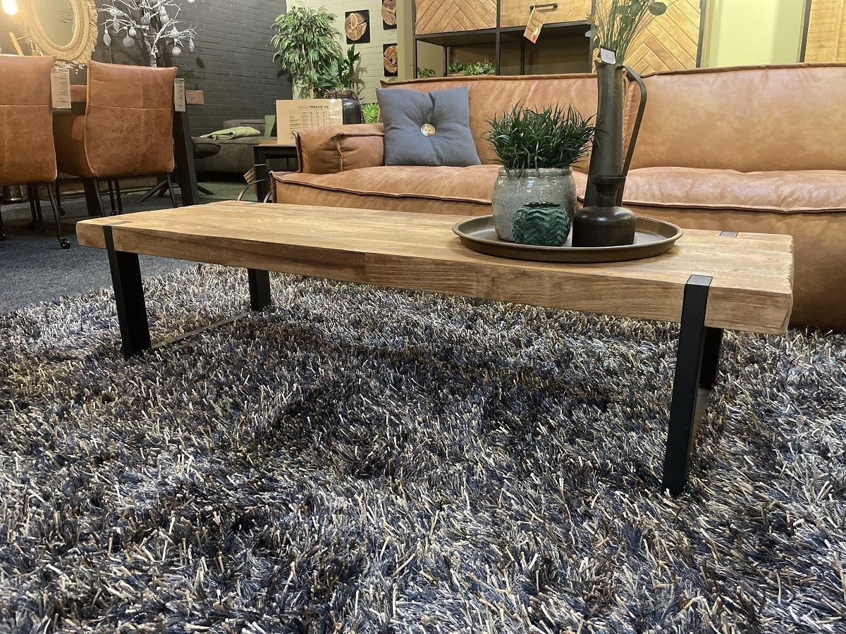 Salontafel Beam 150cm is van de meubelserie BEAM. De salontafel heeft een robuuste uitstraling door het onbehandelde teakhouten blad. De randen zijn dan ook niet recht afgewerkt. Hierdoor krijgt de tafel een echte natuurlijke uitstraling.