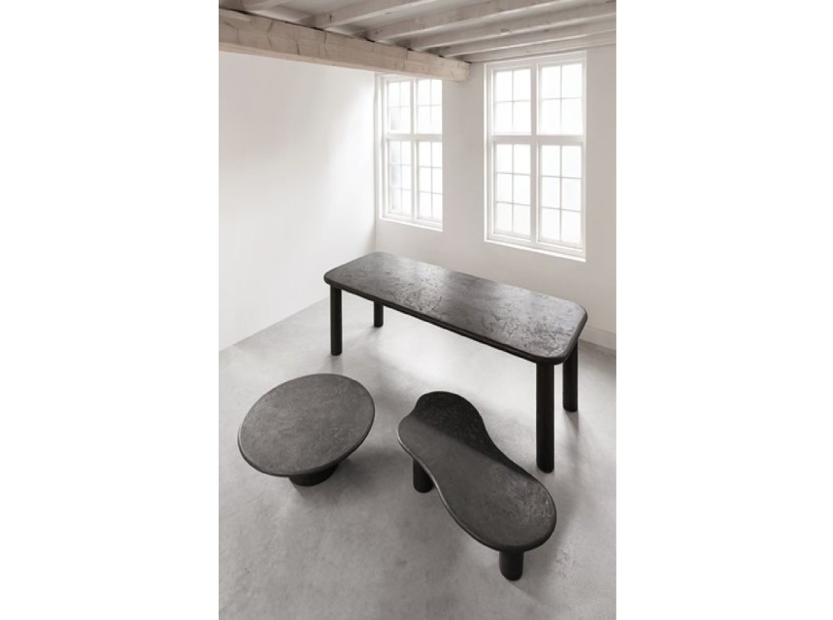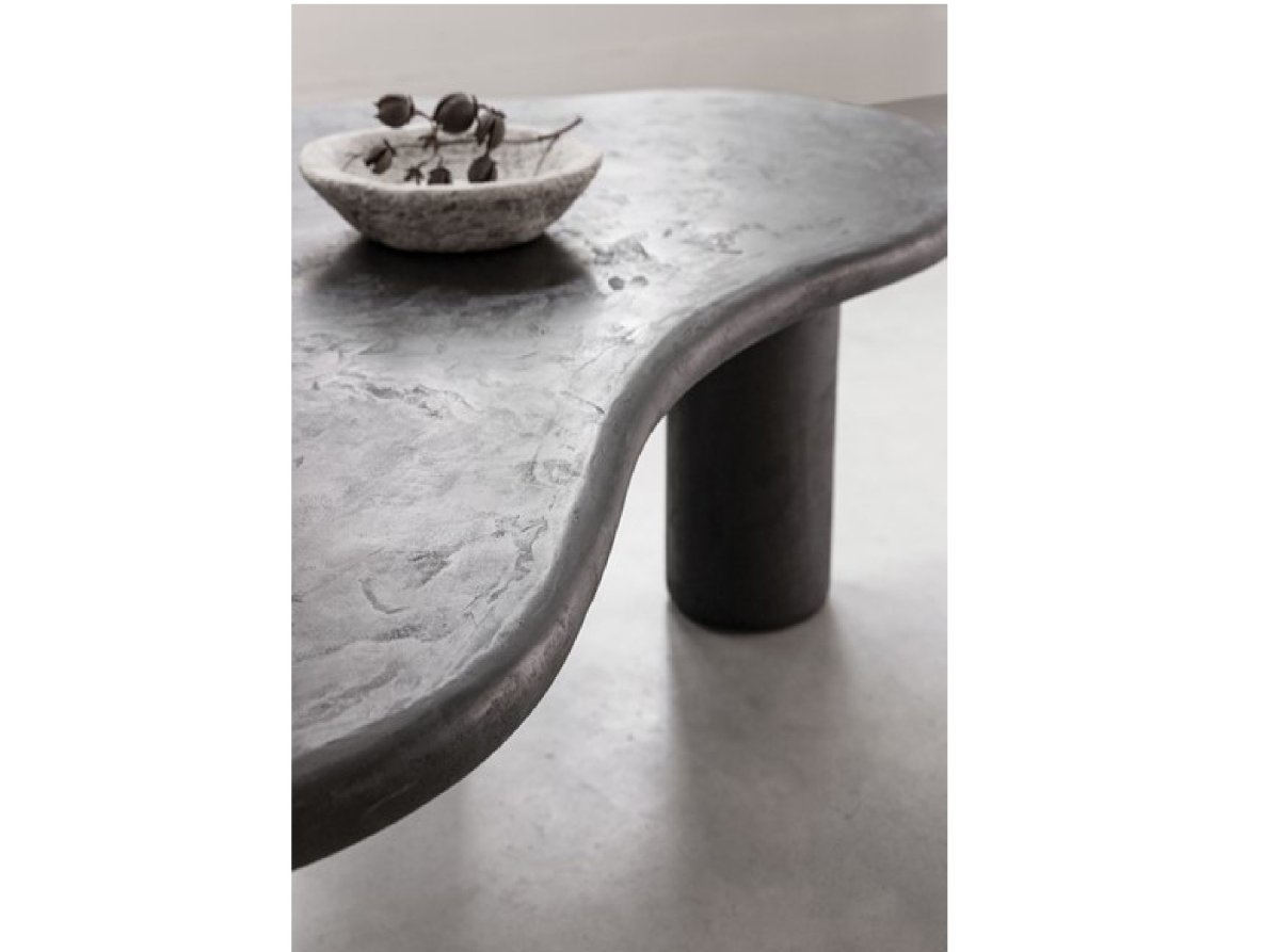 Salontafel Scala Curva is gemaakt van mortex, de tafel heeft een organische vorm met dikke ronde poten. Dit geeft de tafel een speels maar stoere uitstraling!