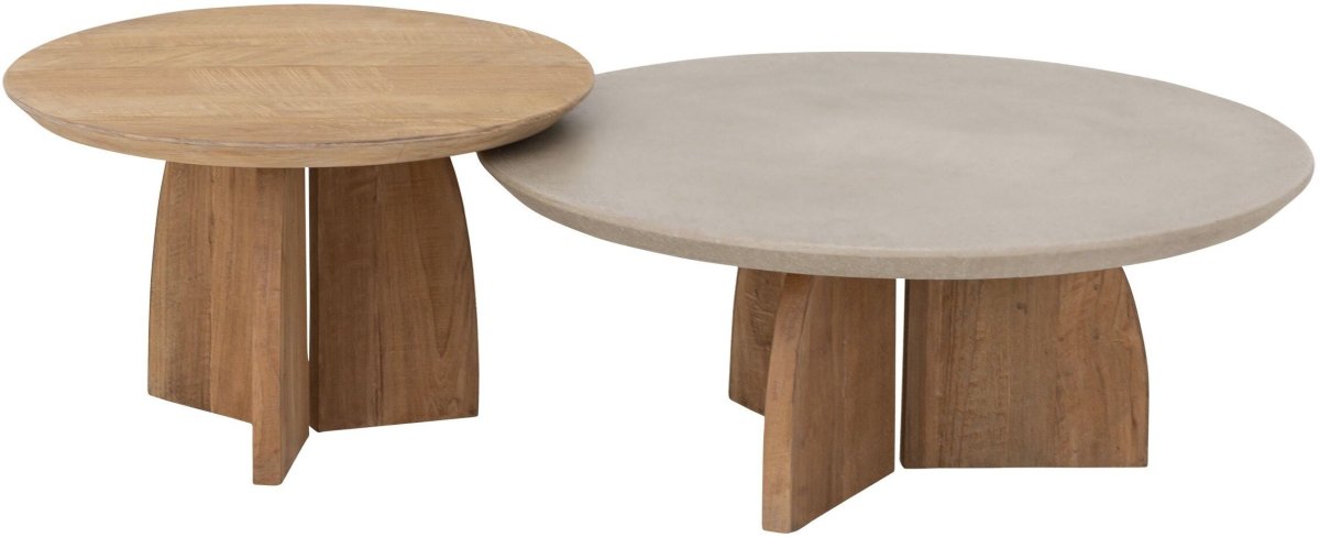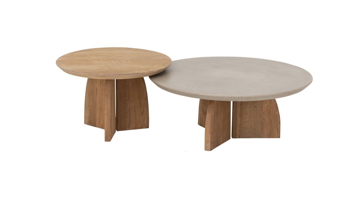 Salontafel set Nova Travertin is gemaakt van gerecycled teakhout en travertin.