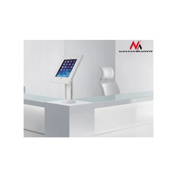 Deze standaard is ideaal om in uw winkel te hebben als u iPads verkoopt. De iPad standaard is zo gemaakt dat het praktisch onmogelijk is om de iPad uit de standaard te halen. De standaard is ook verstelbaar in hoogte en hoek. Zo kan de standaard ook een kwartslag gedraaid worden zodat de iPad ligt. De standaard is vergrendeld met een sleutel die wordt meegeleverd, waardoor u er zeker van kunt zijn dat de iPad in de standaard niet gestolen kan worden. De kabel om de iPad op te laden kan worden weggewerkt in de voet, zodat de klant alleen de iPad ziet.