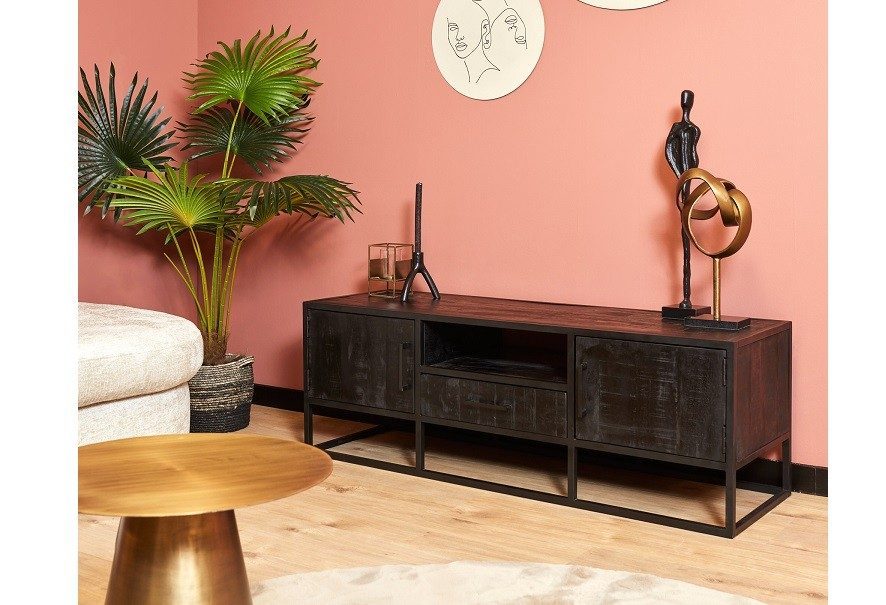 Een stoere toevoeging aan de veelzijdige Denver Black collectie. Tv meubel Denver Black 145 is voorzien van 2 deurtjes, een open vak en een lade. Hierdoor is er veel opbergruimte en is dit meubel geschikt om onder een grote tv te zetten. Gemaakt van mangohout met een subtiel, zwart metalen frame.