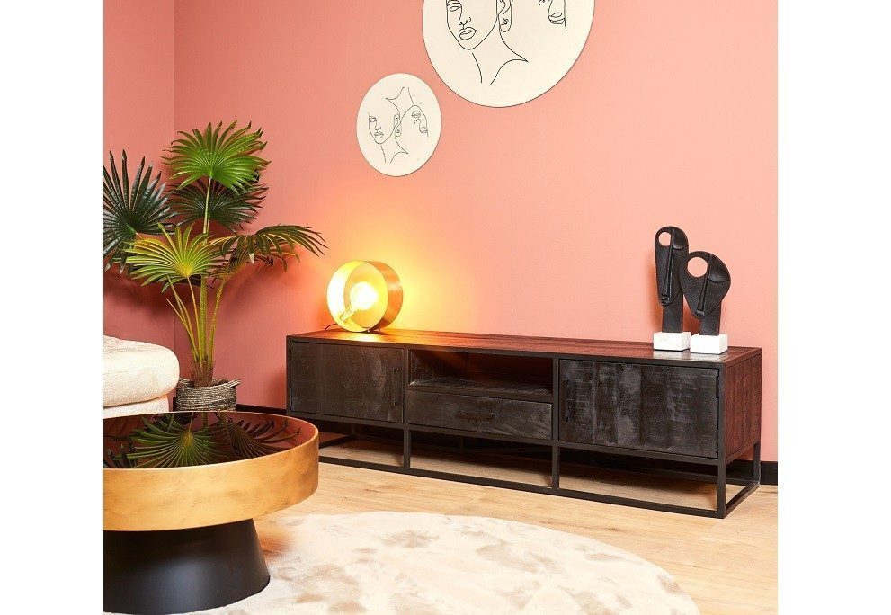 Een stoere toevoeging aan de veelzijdige Denver Black collectie. Tv meubel Denver Black 180 van StarFurn is voorzien van 2 deurtjes, een open vak en een lade. Hierdoor is er veel opbergruimte en is dit meubel geschikt om onder een grote tv te zetten. Gemaakt van mangohout met een subtiel, zwart metalen frame.