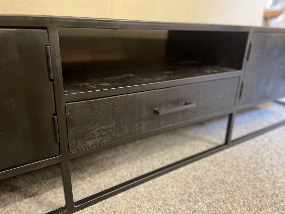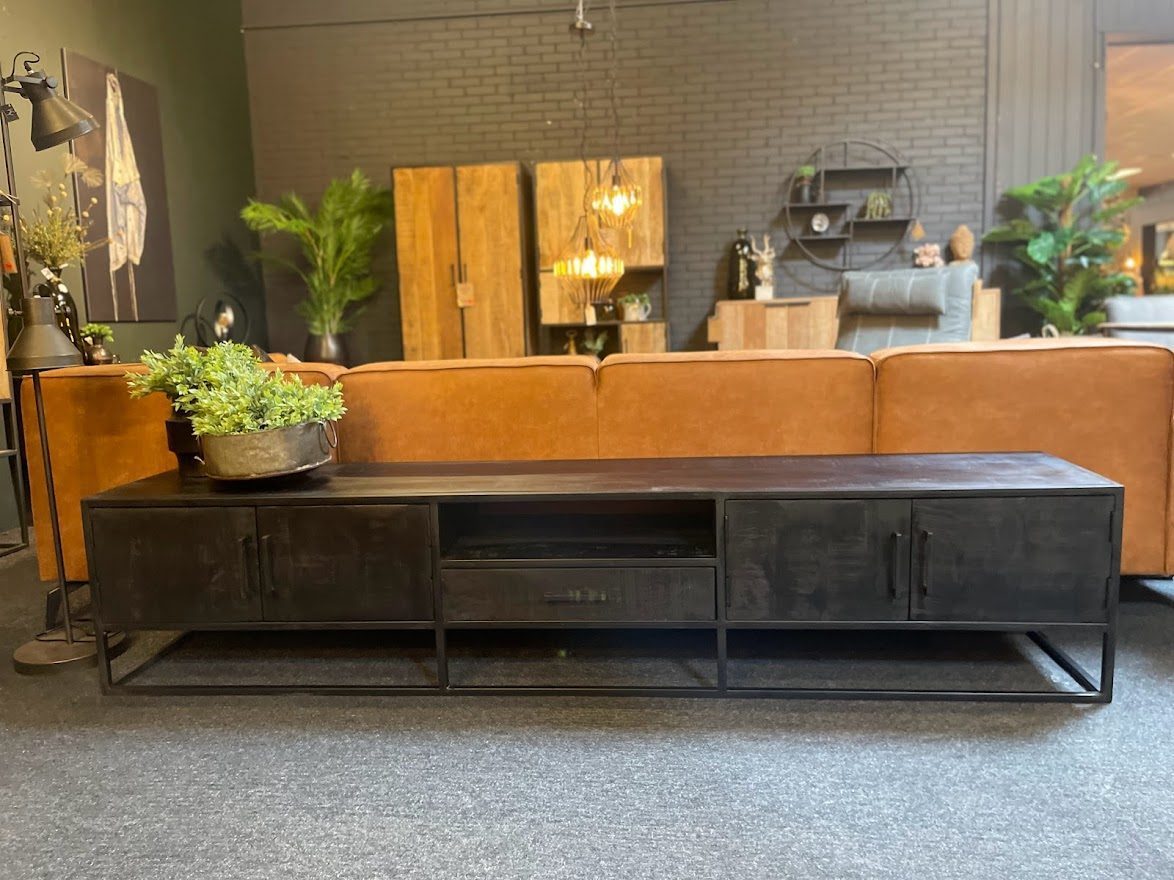 Een stoere toevoeging aan de veelzijdige Denver collectie. Tv meubel Denver met een lengte van maar liefst 240cm. Dit meubel is voorzien van 4 deurtjes, een open vak en een lade. Hierdoor is er veel opbergruimte en is dit meubel geschikt om onder een grote tv te zetten. Gemaakt van mangohout met een subtiel, zwart metalen frame.