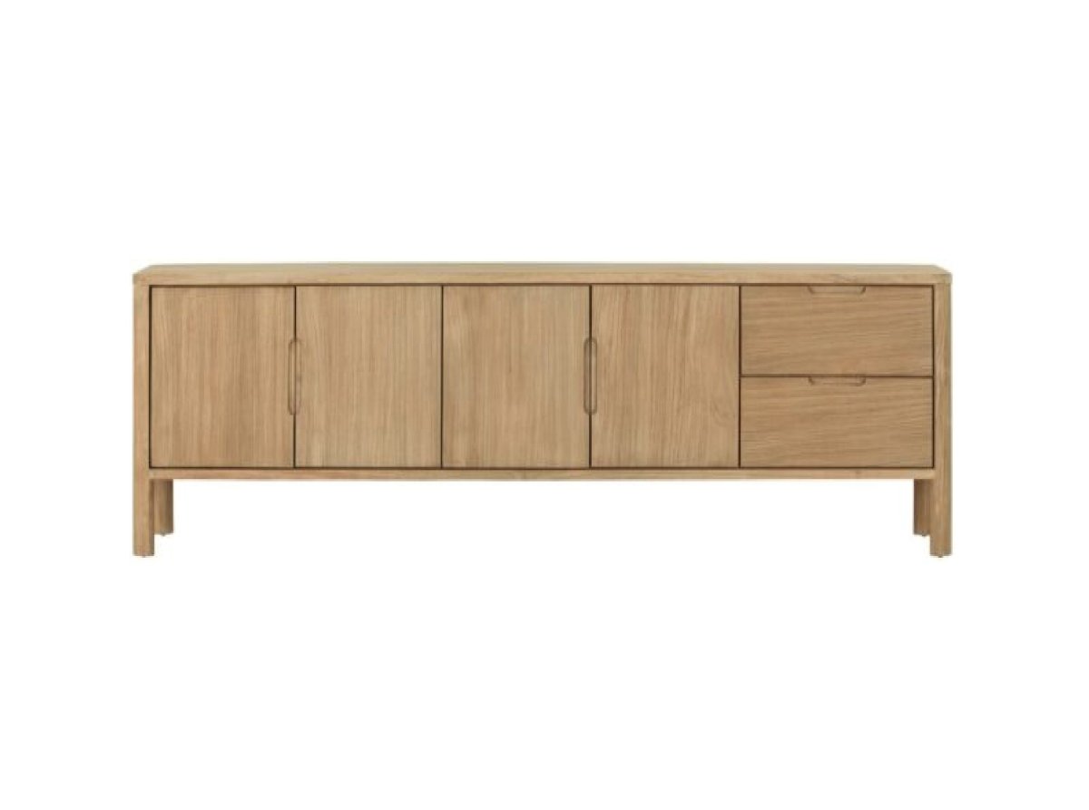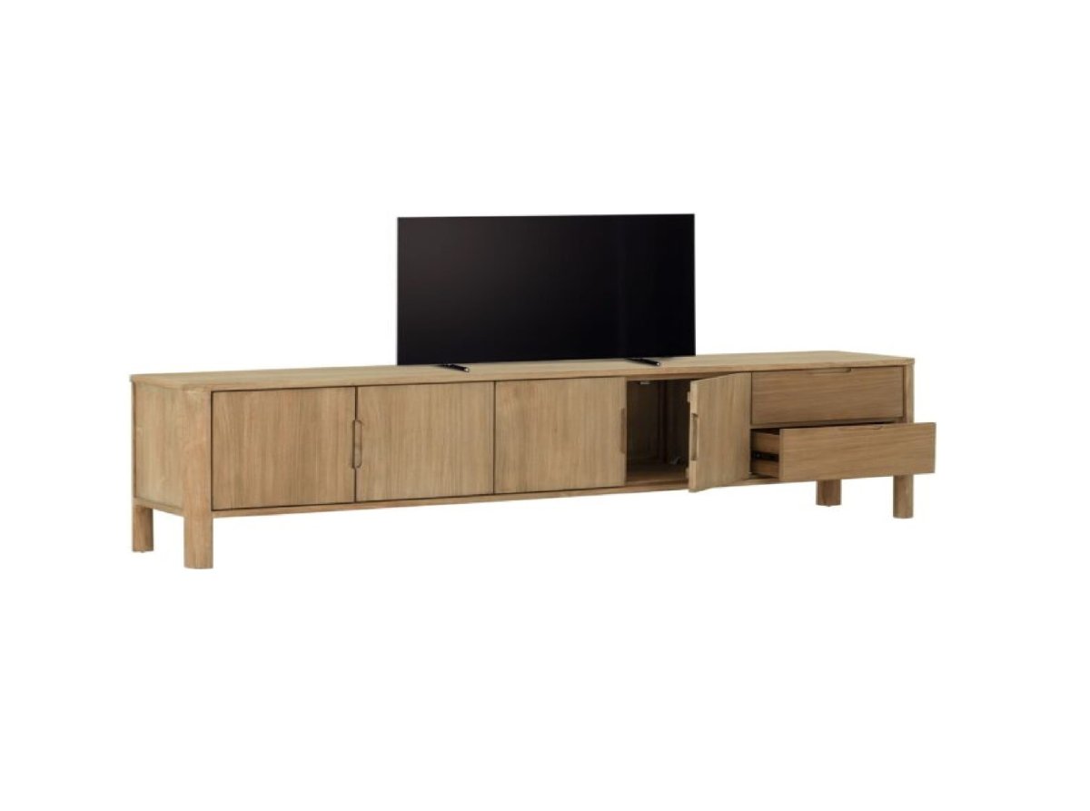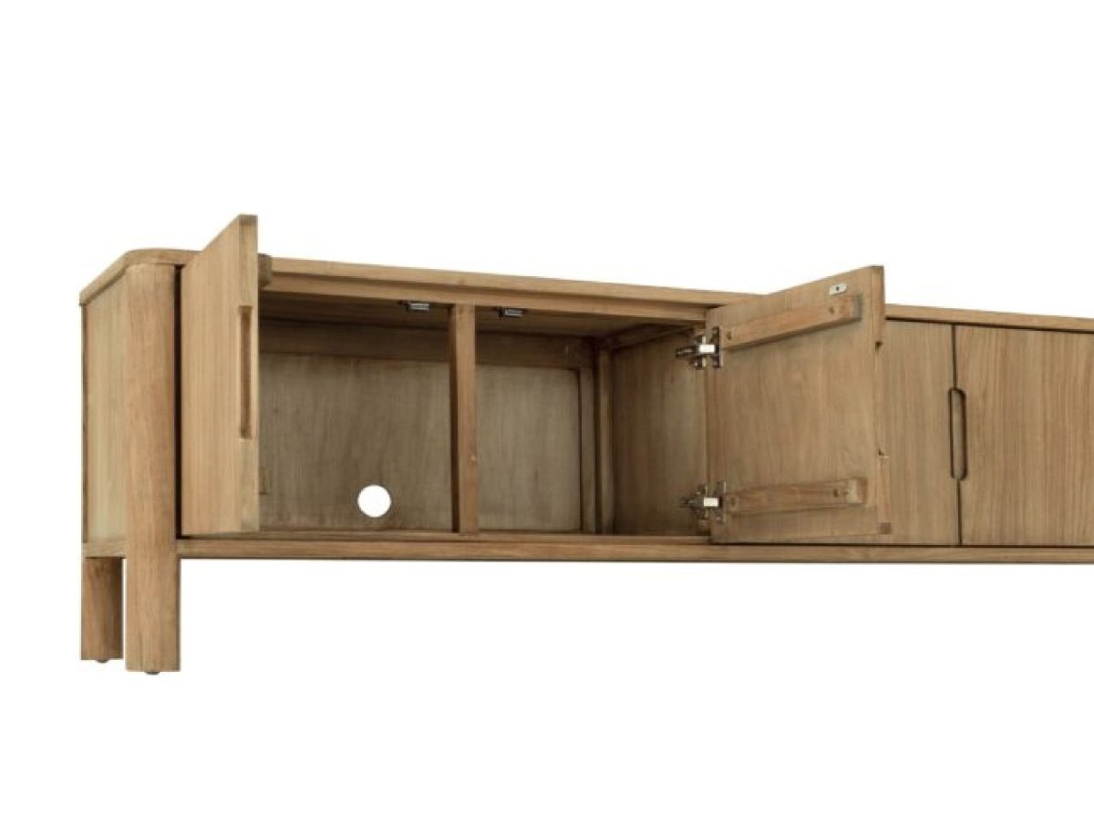 Tv-Meubel Forte is gemaakt van natuurlijke teakhout, dit tv-meubel heeft 4 deurtjes en een houten poot.