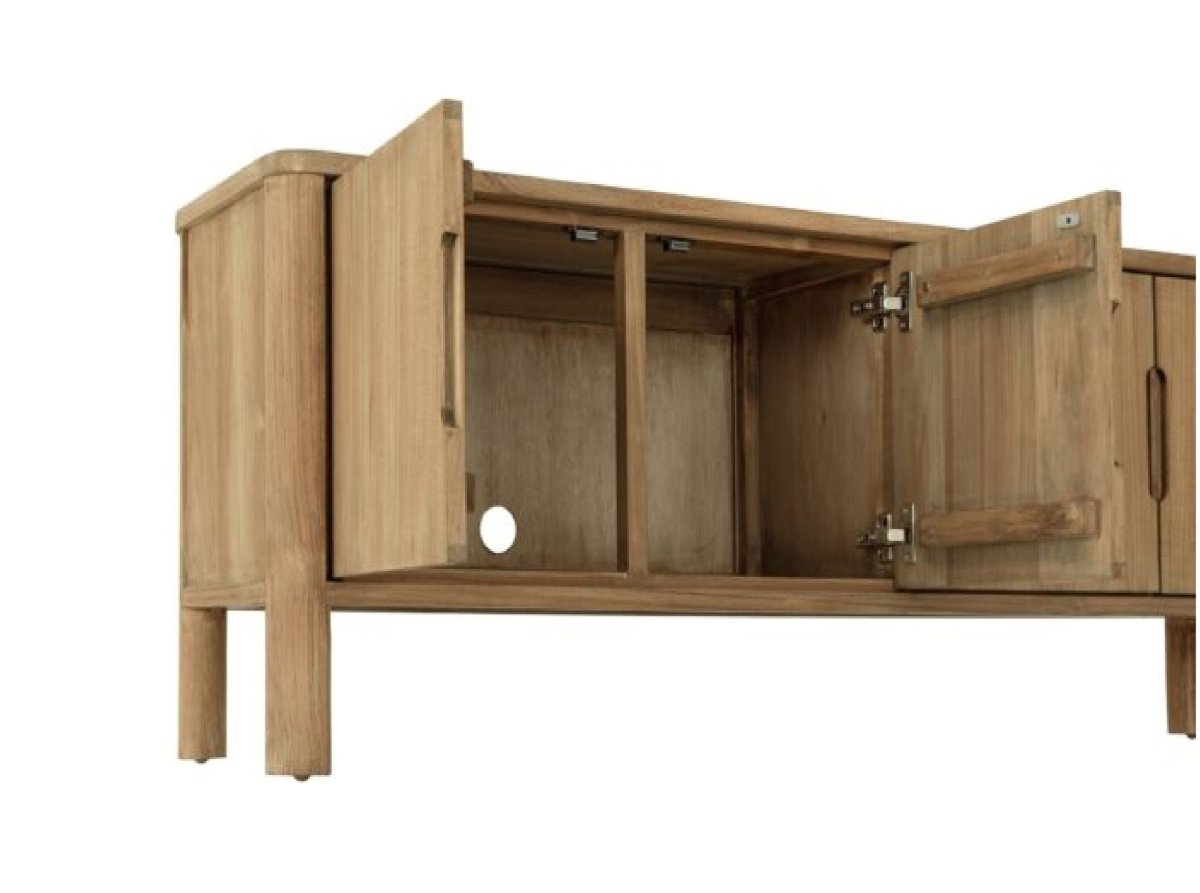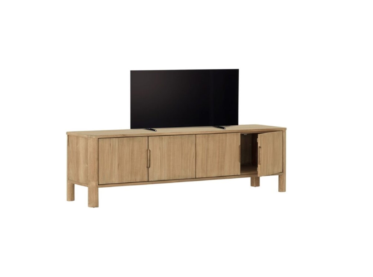 Tv-Meubel Forte is gemaakt van natuurlijke teakhout, dit tv-meubel heeft 4 deurtjes en een houten poot.