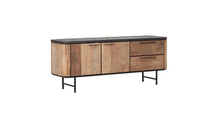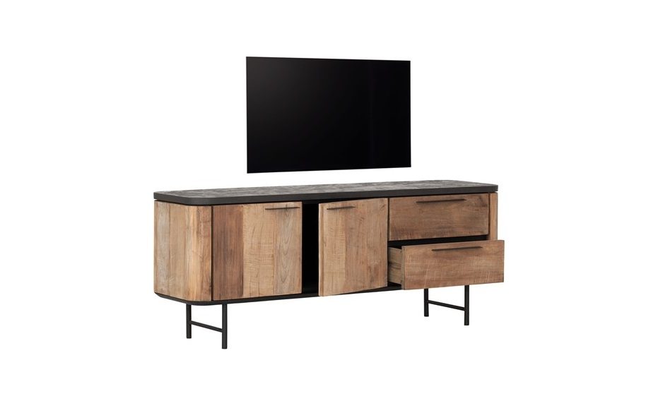 Tv-Meubel Soho Small van DTP-Home is gemaakt van gerecycled teakhout en mortex, met zijn 2 deuren en 2 lades geeft dit een speelse design en is dit tv-meubel perfect voor elk interieur.
