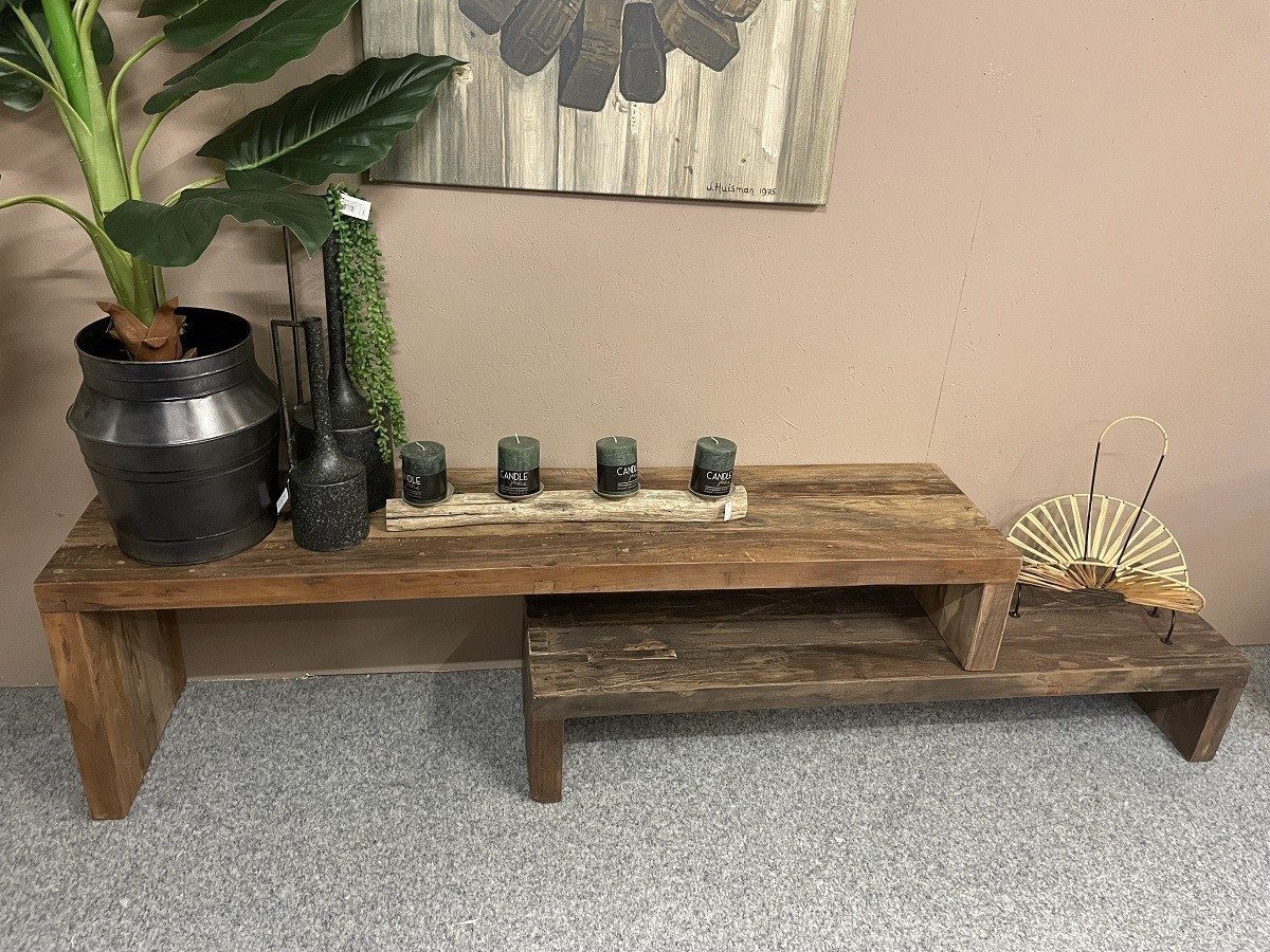 Uitschuif Tv meubel Timber 150 kenmerkt zich door het gebruik van verschillende, oude houtsoorten. Dit geeft deze collectie zijn stoere en robuuste uitstaling.