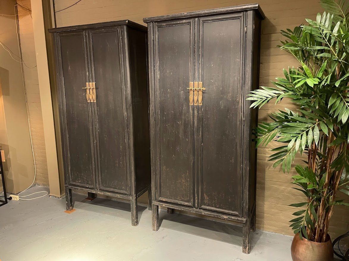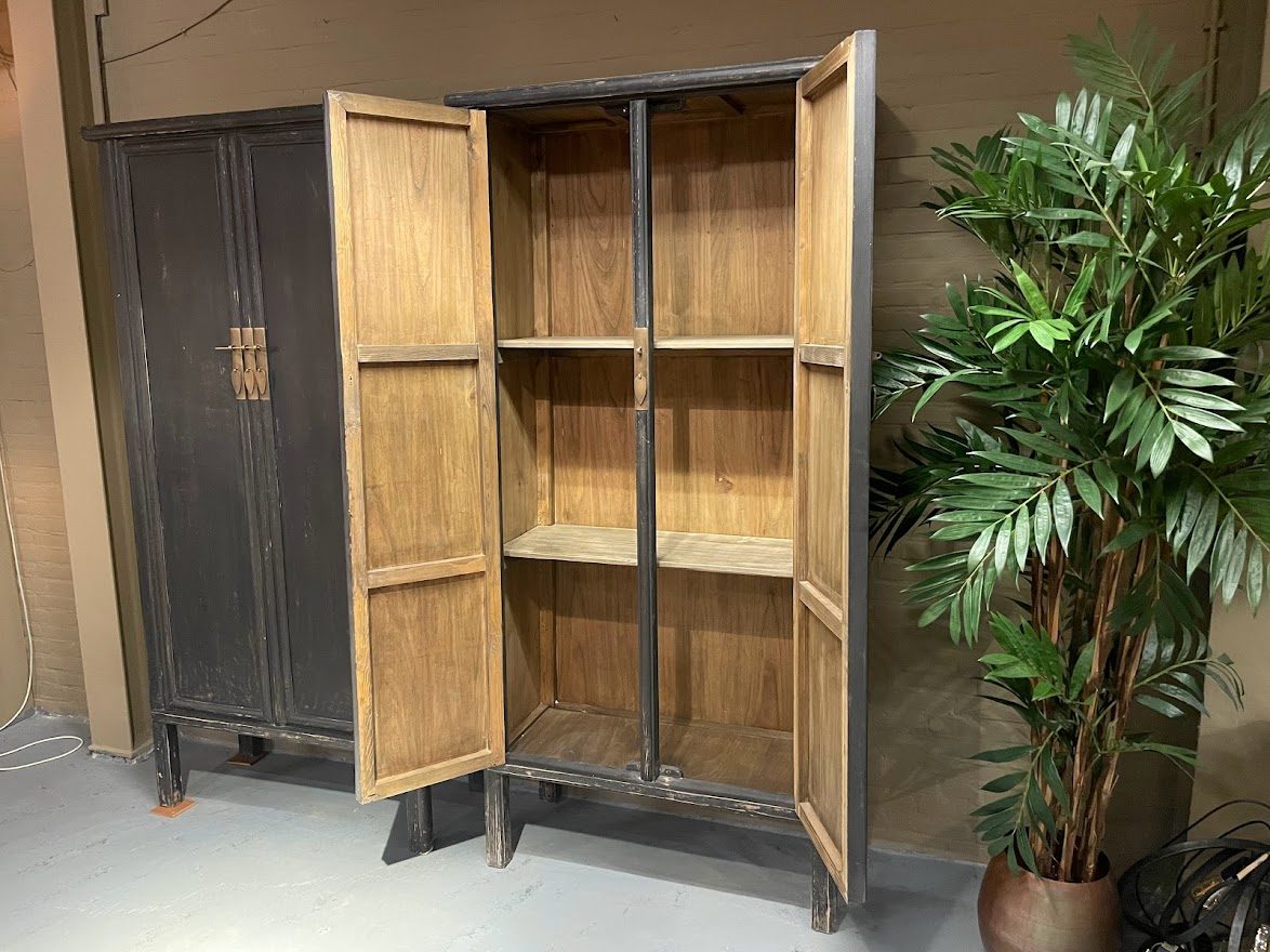 Deze Unieke Chinese kast Black is een echte blikvanger. Deze is gemaakt van hergebruikt Elmhout afkomstig van oude huizen, bruggen en poorten. De kast heeft 2 grote deuren met daarachter 3 legplanken welke een unieke, goudkleurige sluiting heeft.