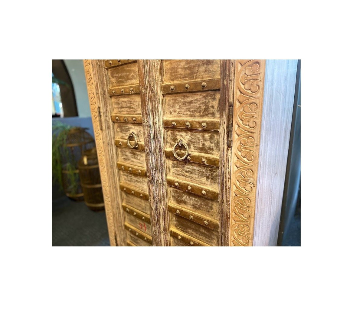 Een prachtige unieke kast uit India. Deze eyecatcher is gemaakt van oude teakhouten poortdelen, waar met oud houtsnijwerk en teakhout met veel zorg een unieke kast van gemaakt is. Achter de grote deuren zitten legplanken waar u veel van uw spullen kunt bergen!