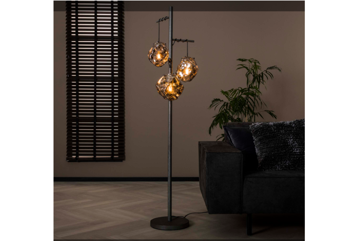 Deze Vloerlamp Ice is een echte Eyecatcher en geeft een trendy gevoel aan ieder interieur. De glazen kappen zijn mond geblazen en zijn verstelbaar in hoogte. Hierdoor kan je de lamp naar eigen wens op iedere hoogte verstellen.