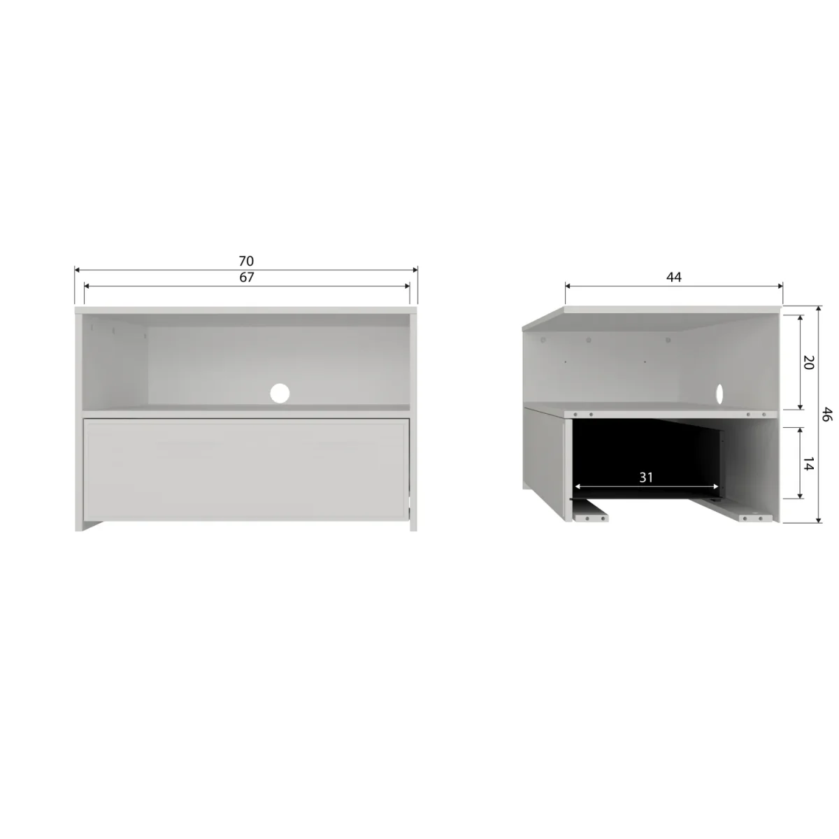 WOOOD tv-meubel met lade/ open vak Yissa – Grenen – Wolkengrijs – 46x70x44